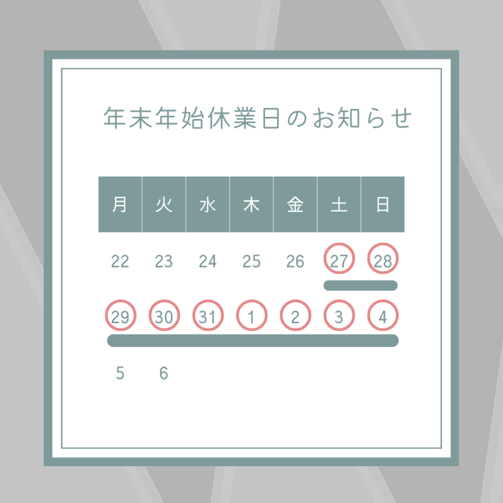 ■冬季休業期間 2025年12月27日(土) ~ 2026年1月4日(日)